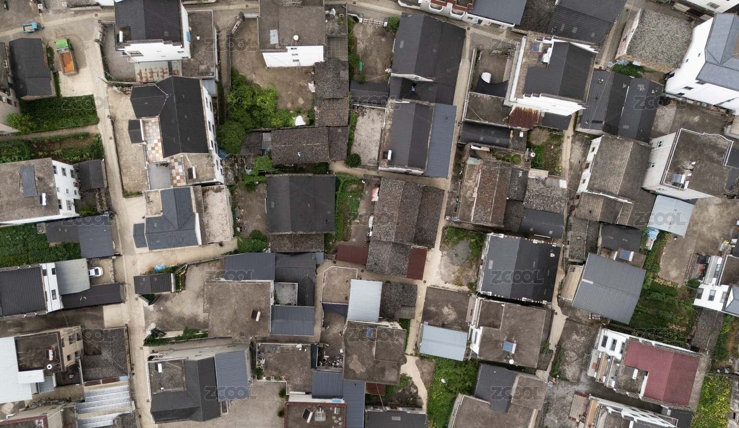 柳州窑埠古镇,航拍阳光下的青瓦屋顶建筑