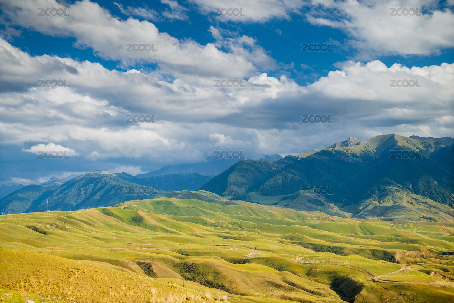 美丽的中国新疆伊犁伊昭公路沿途山地与草原