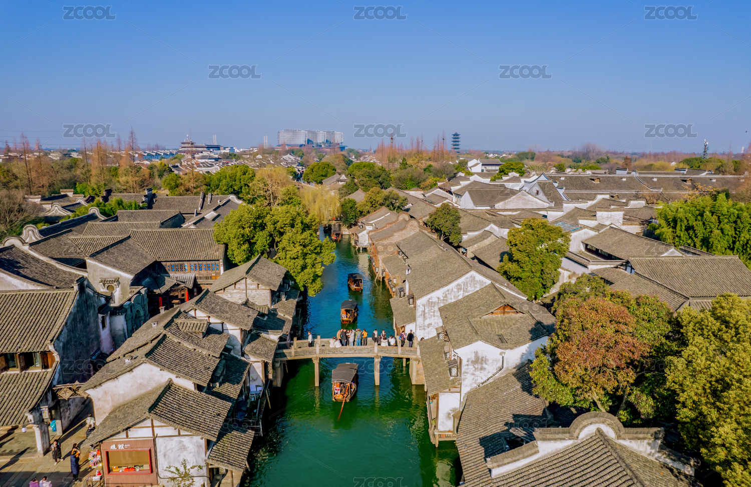 航拍江南水乡古镇乌镇风光