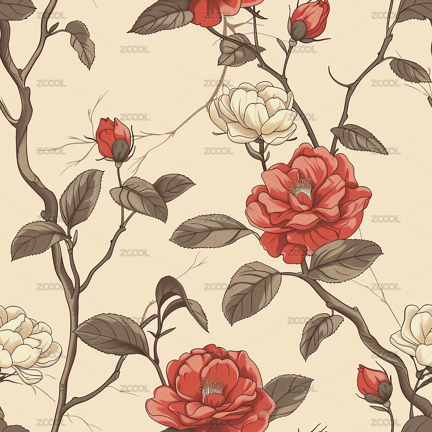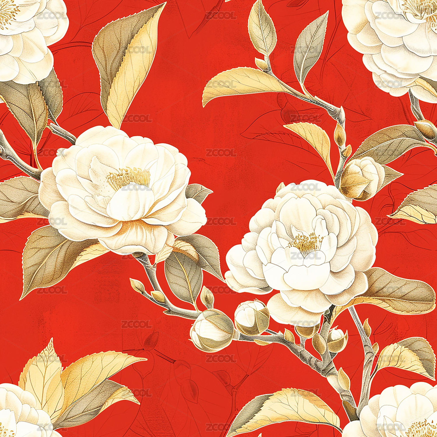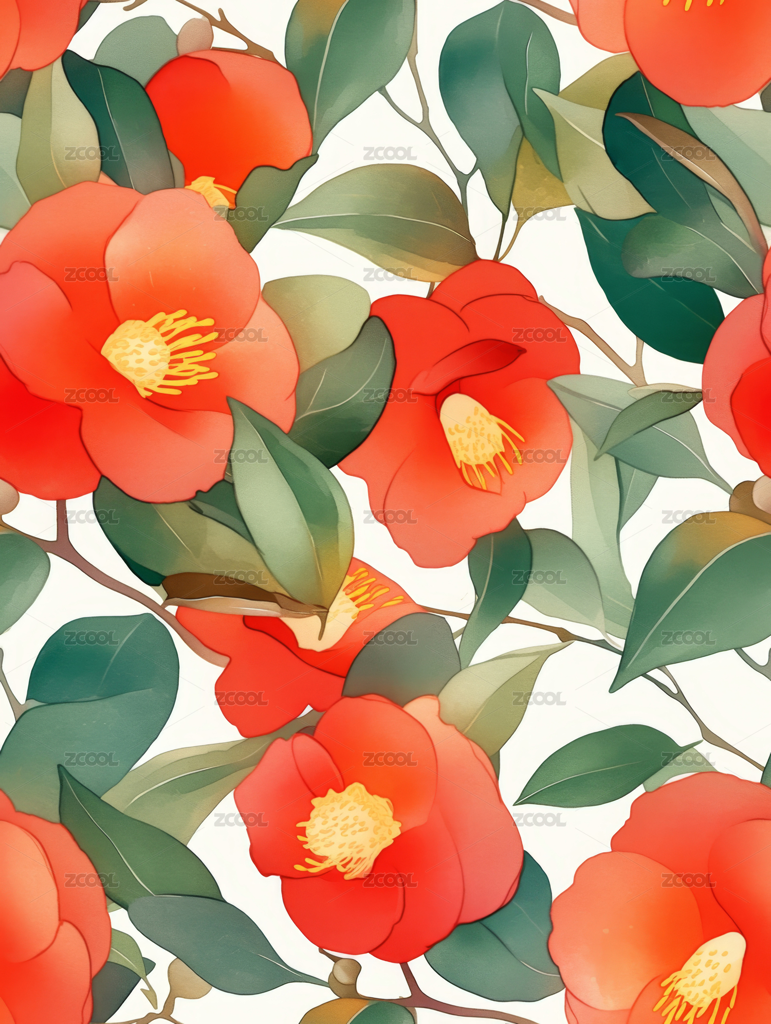 山茶花,四方联,花卉,花枝,底纹,纹理