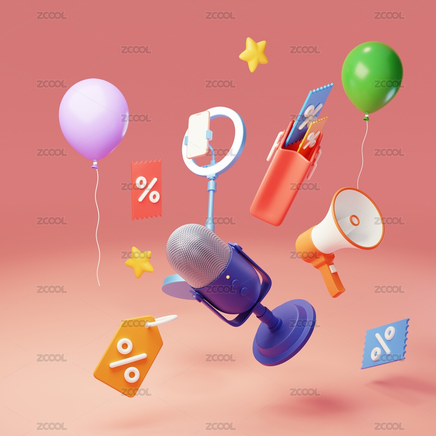 小喇叭与折扣券3D渲染