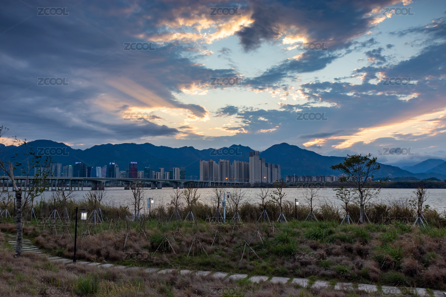 福建,福州,乌龙江湿地公园,堤坝,湿地,春天,天空,云雾,环境,都市
