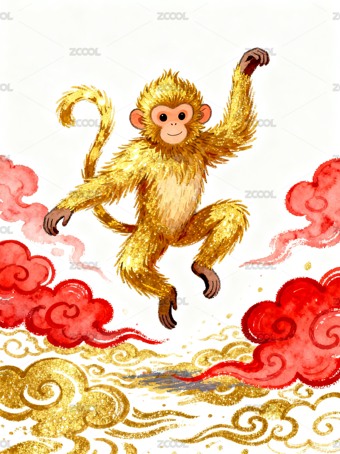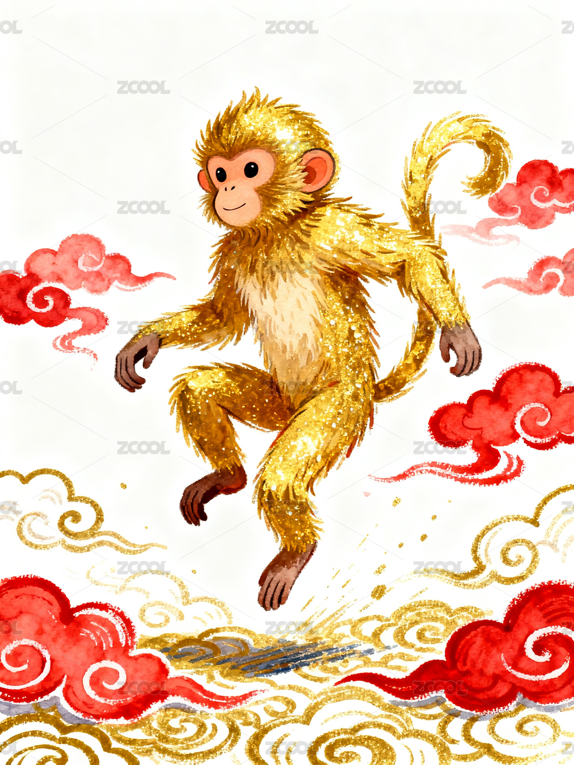 金色猴子腾云驾雾飞翔