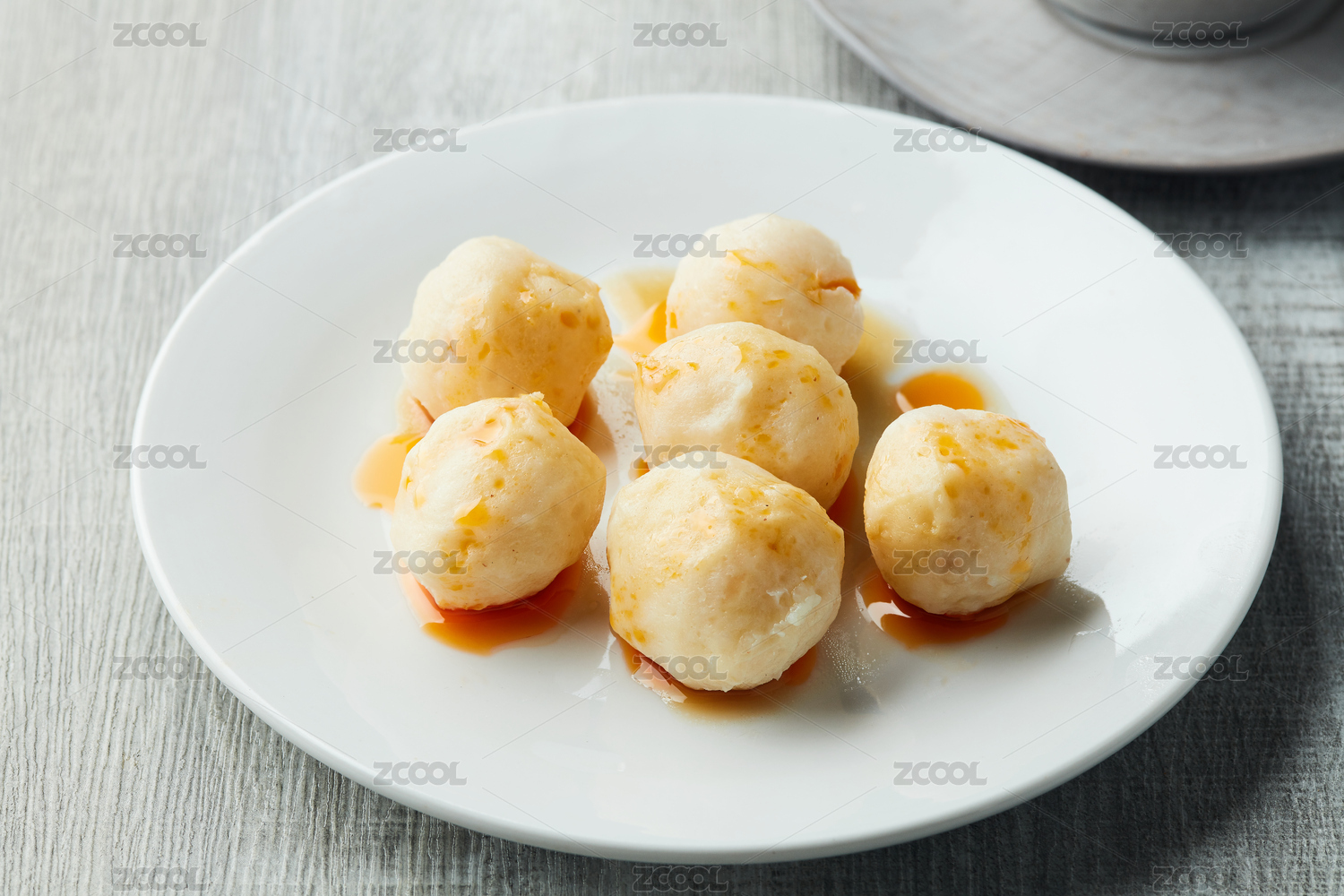 桌面上的盘子里的美味可口的龙虾丸