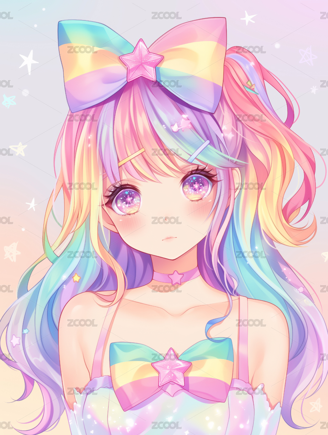 炫彩梦幻二次元少女插画