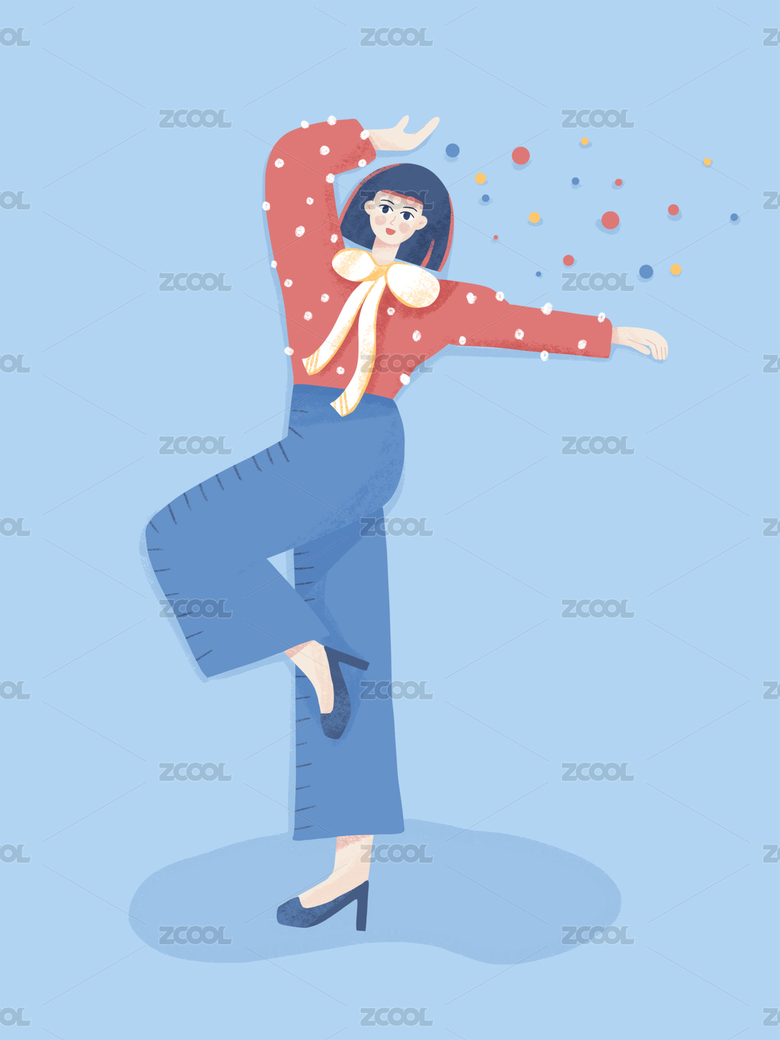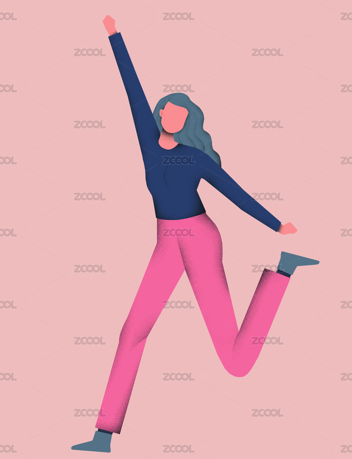 卡通女生青少年人物美女开心跳起来矢量插画