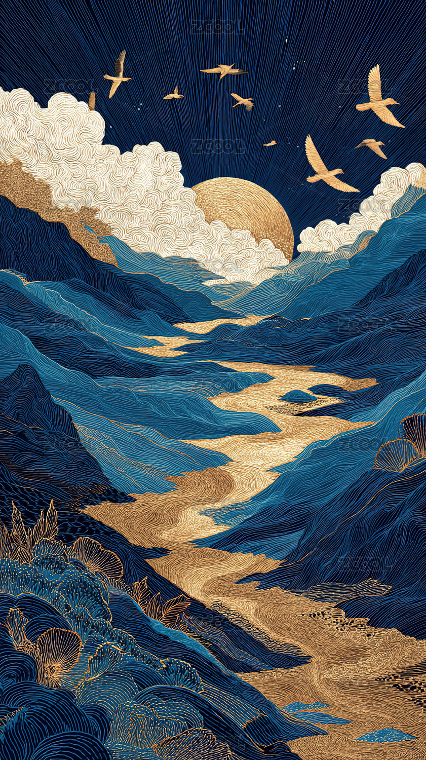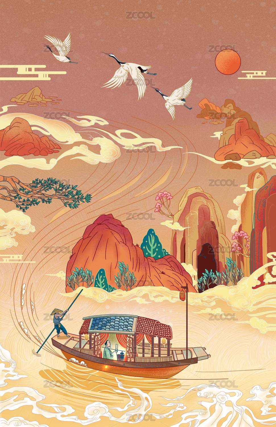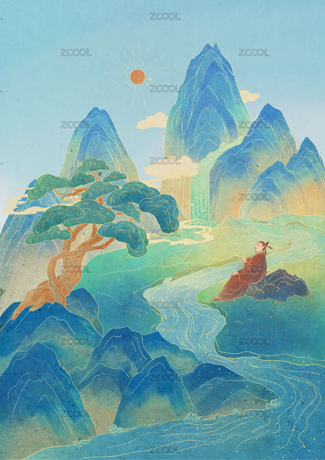 山水中国风国潮插画