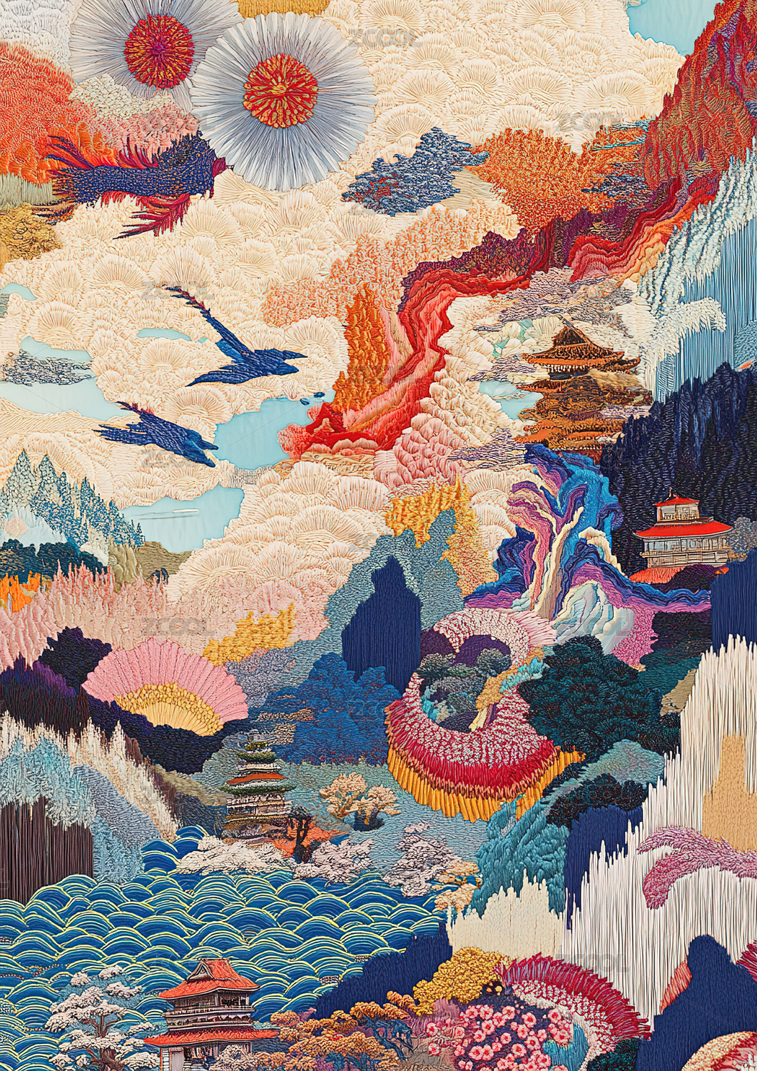国潮古风中国风祥云山水插画