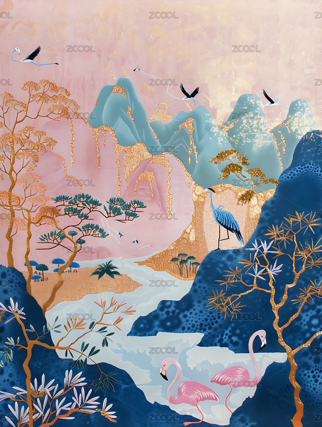 国风洒金山水