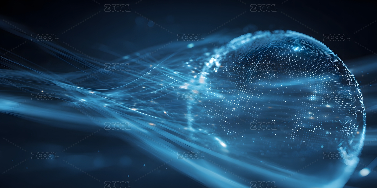 由粒子线运动轨迹穿过科技感地球全球化概念