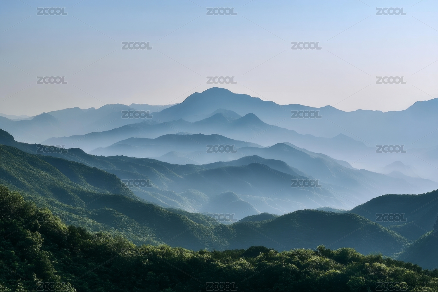 大自然烟雾朦胧层层叠叠一望无尽的山脉