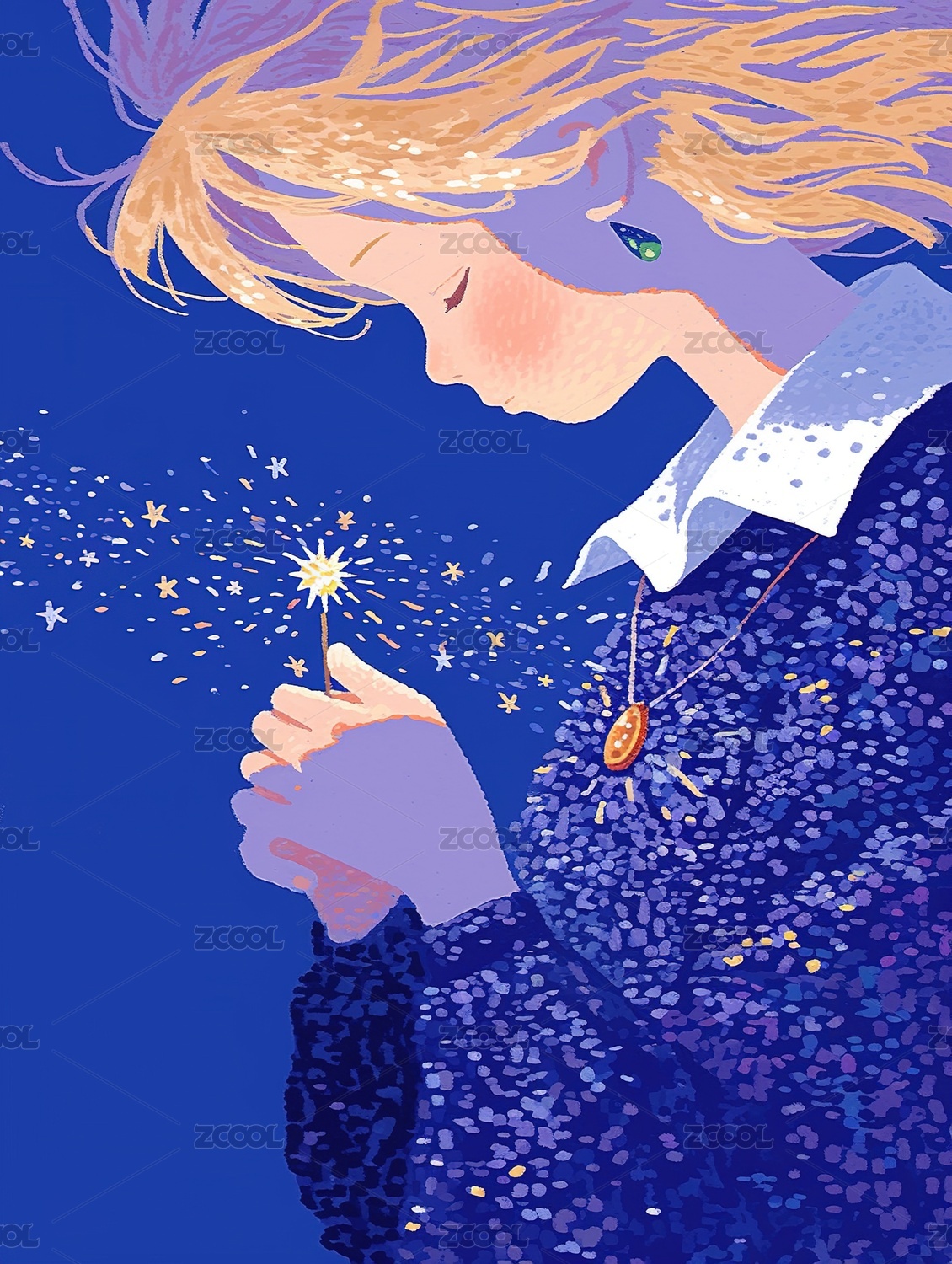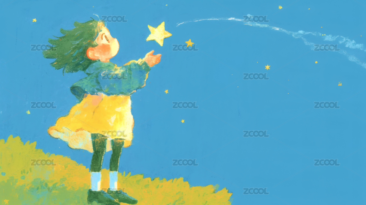 星星,女孩,插画,彩铅风,可爱,儿童插画