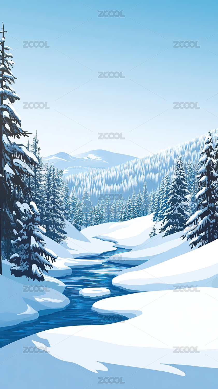 冬季山水风景插画