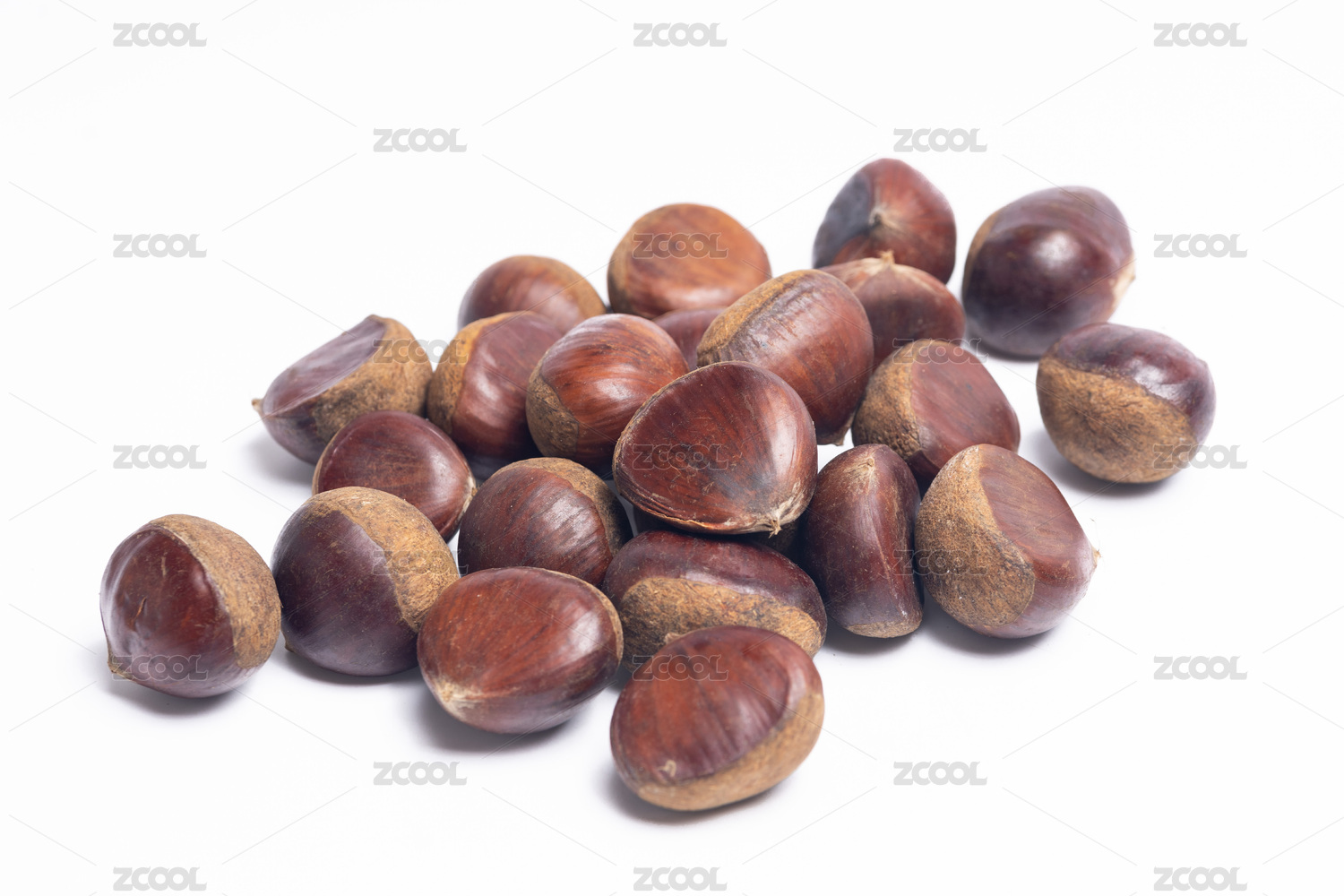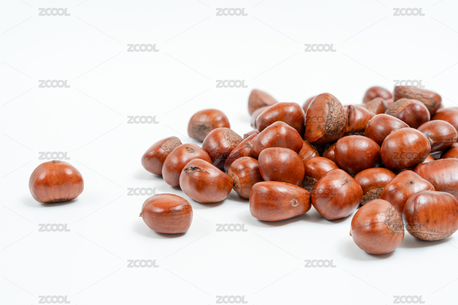 纯白背景里一堆营养丰富的板栗
