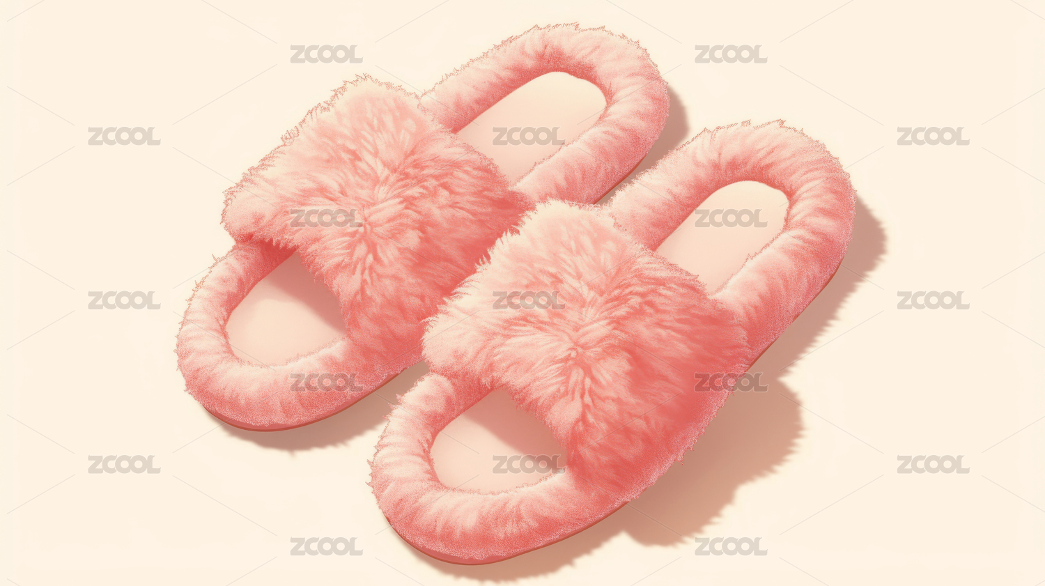 粉色毛绒拖鞋