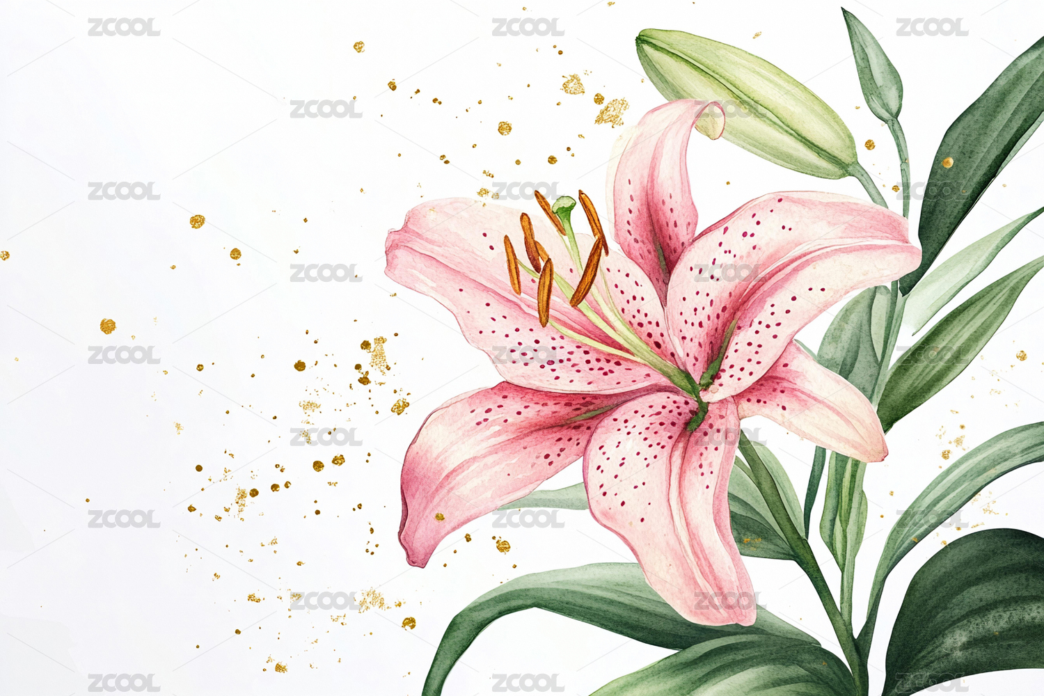 花,百合,百合花,花朵,花瓣,叶子,手绘,插画,简约,绽放