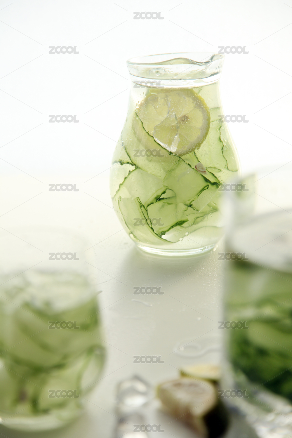 饮品,黄瓜,柠檬,清爽的,好喝的,饮料,柠檬片,黄瓜切片,透明的,玻璃杯