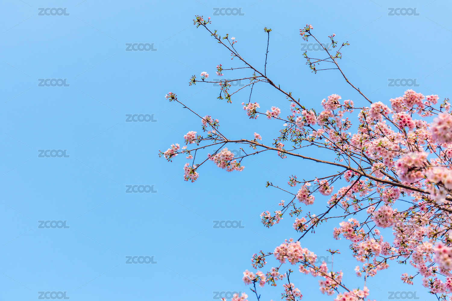 蓝天下盛开的樱花