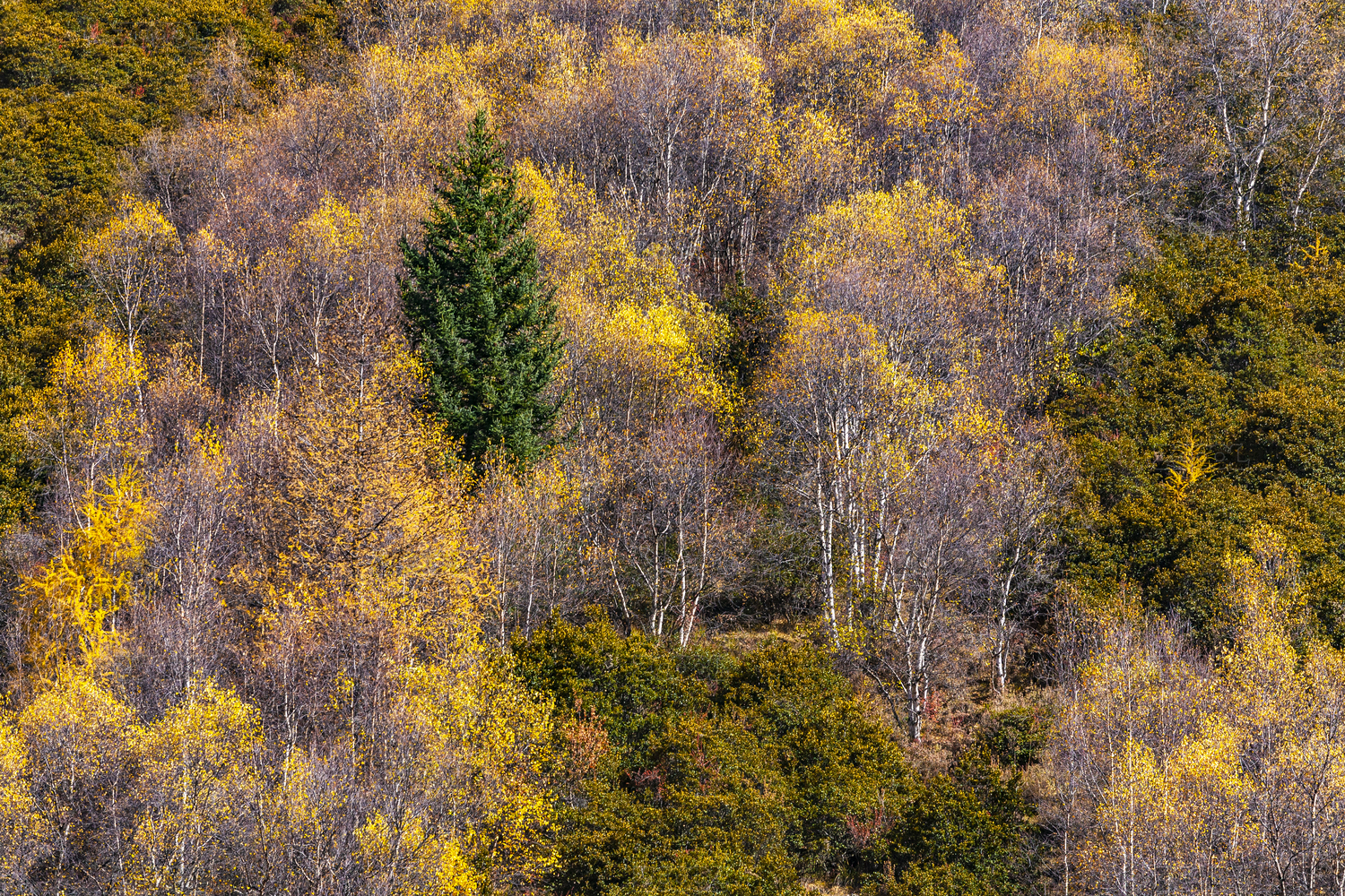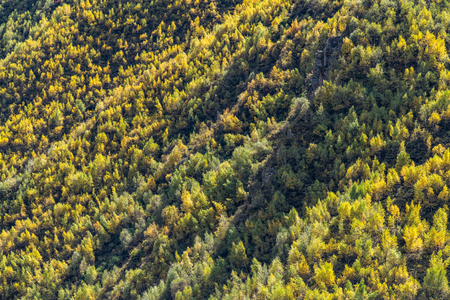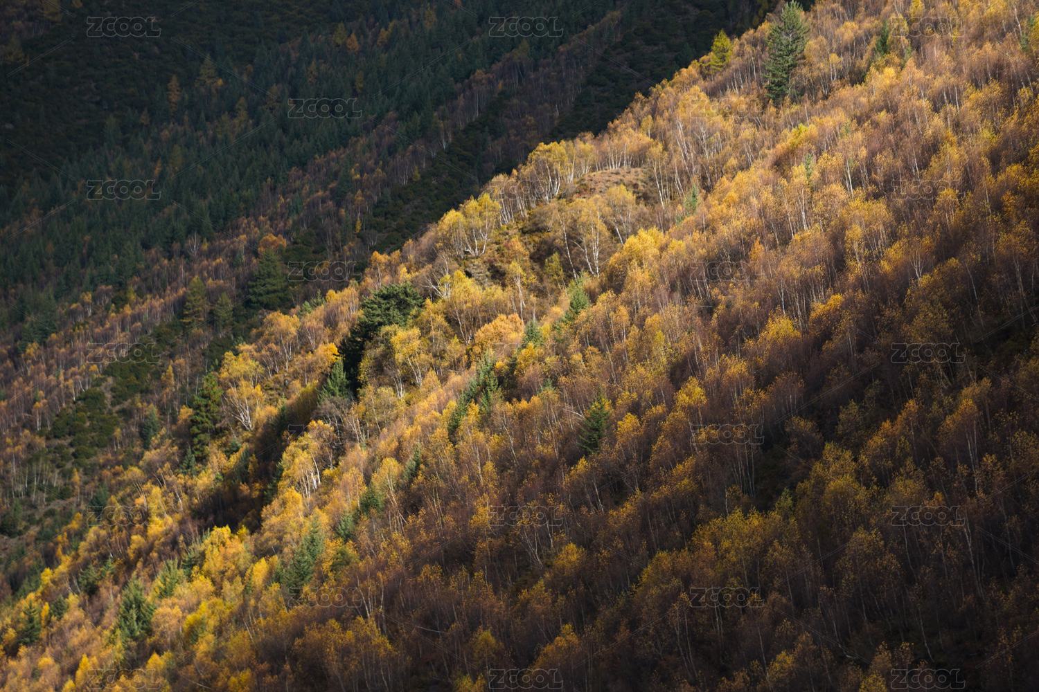 中国四川甘孜八美到雅拉雪山路上的彩林秋色