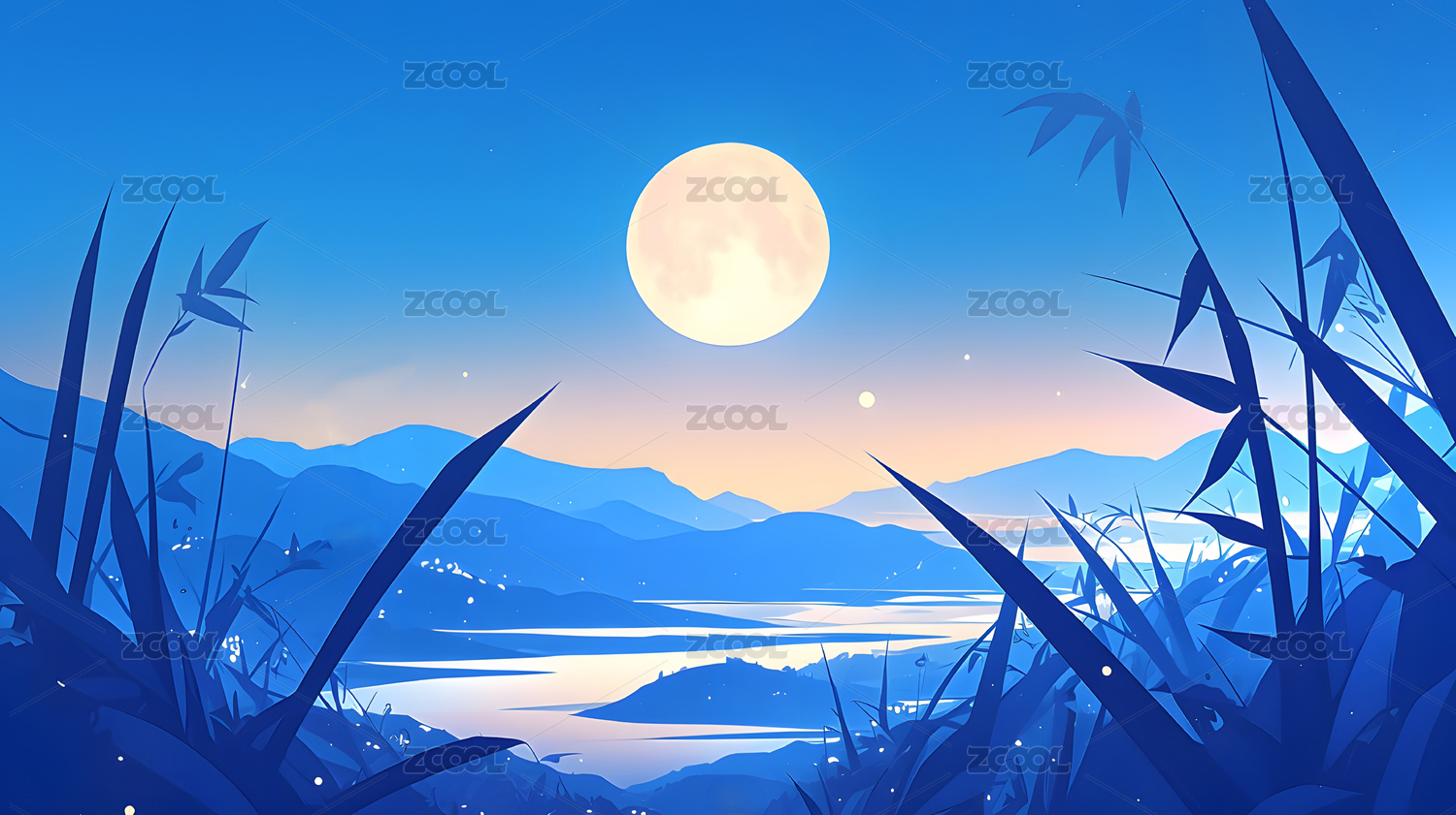 月亮,圆月,风景,中秋节,山水,湖泊,天空