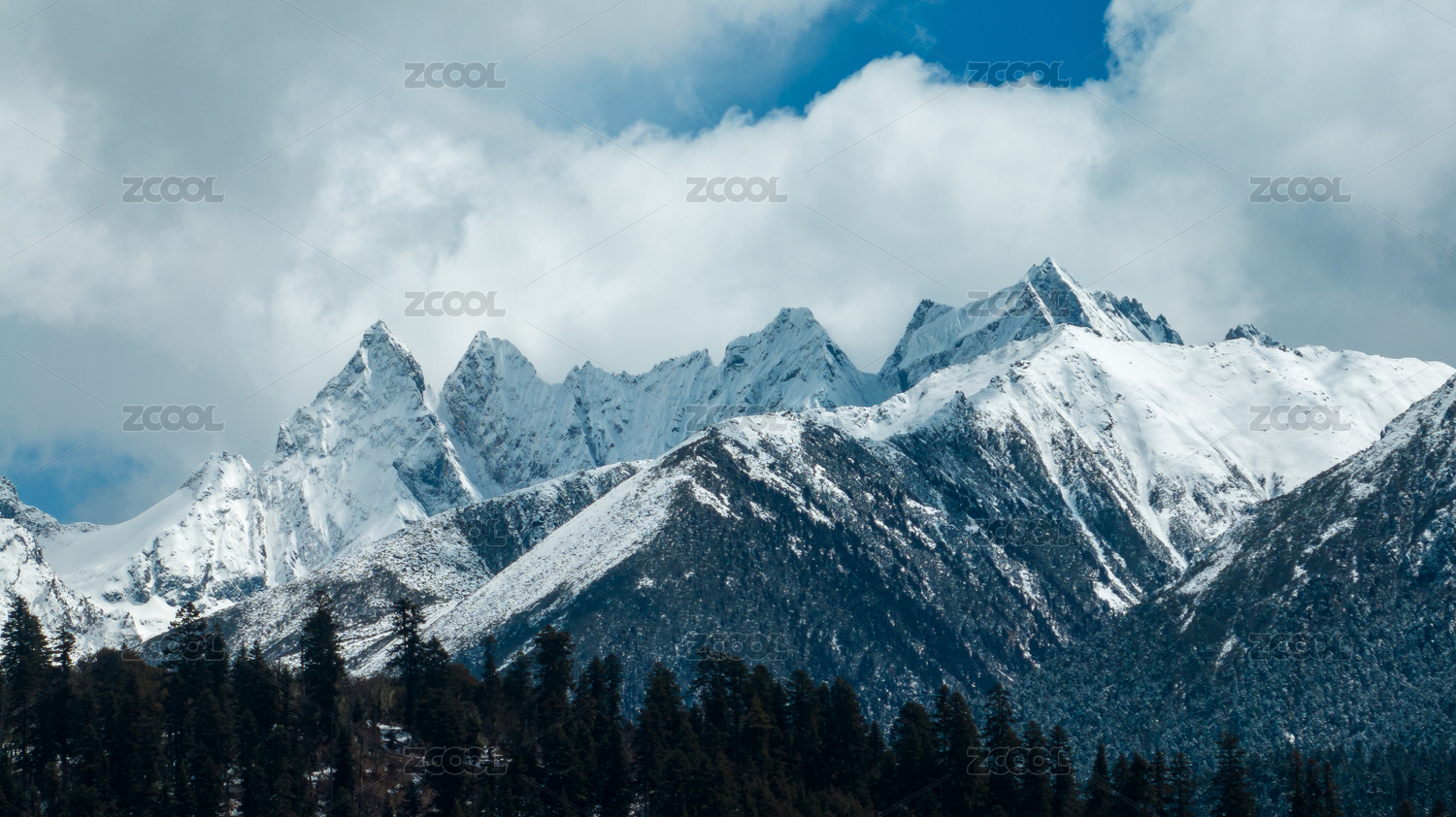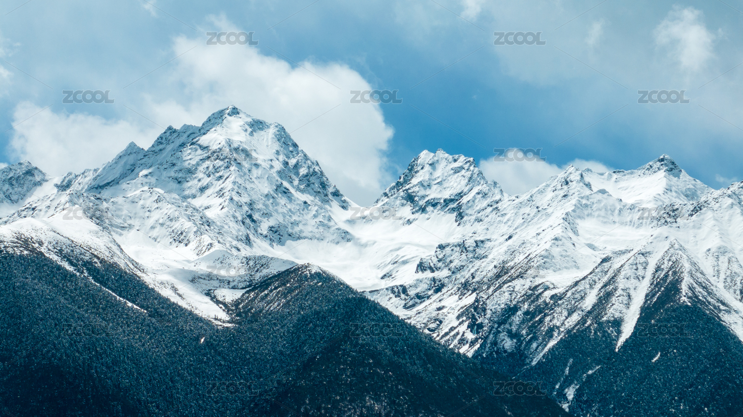 中国四川甘孜州折多塘观景台雪山蓝天白云