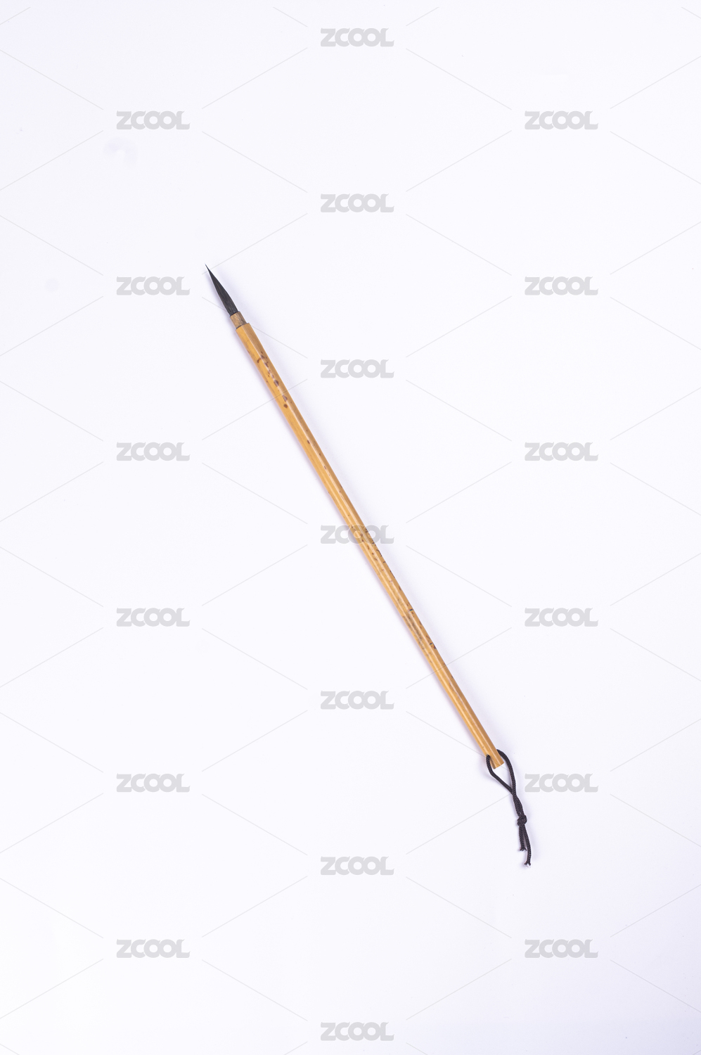 白色背景上的文房四宝中的传统竹制毛笔