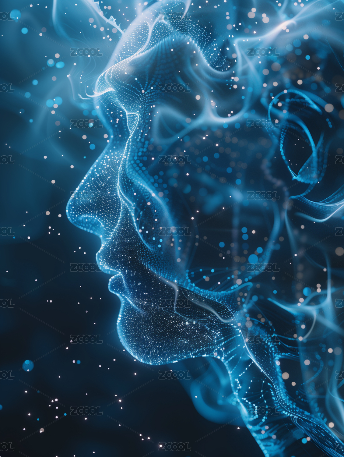 美女头像蓝色科技发光粒子抽象背景