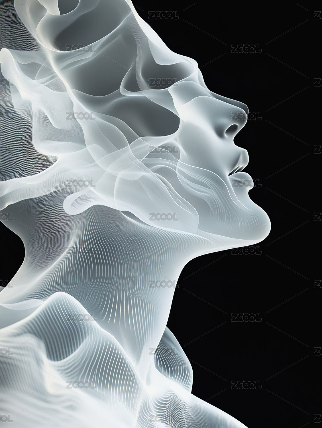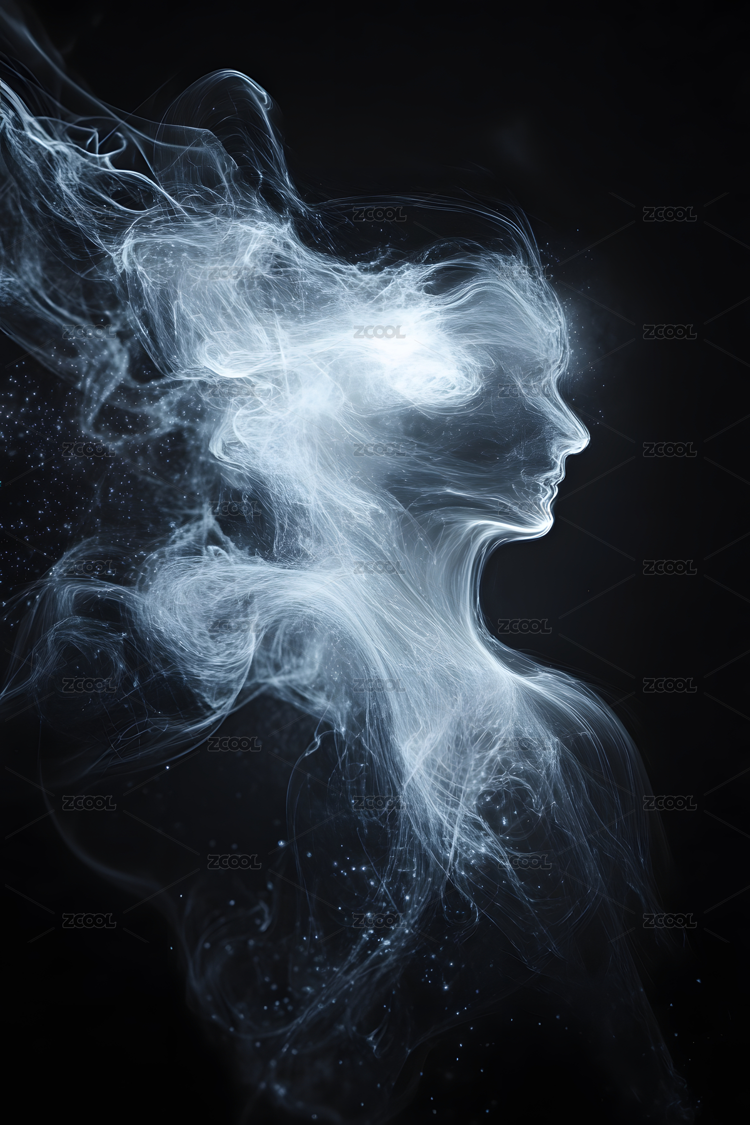 烟雾构成的女性侧脸轮廓