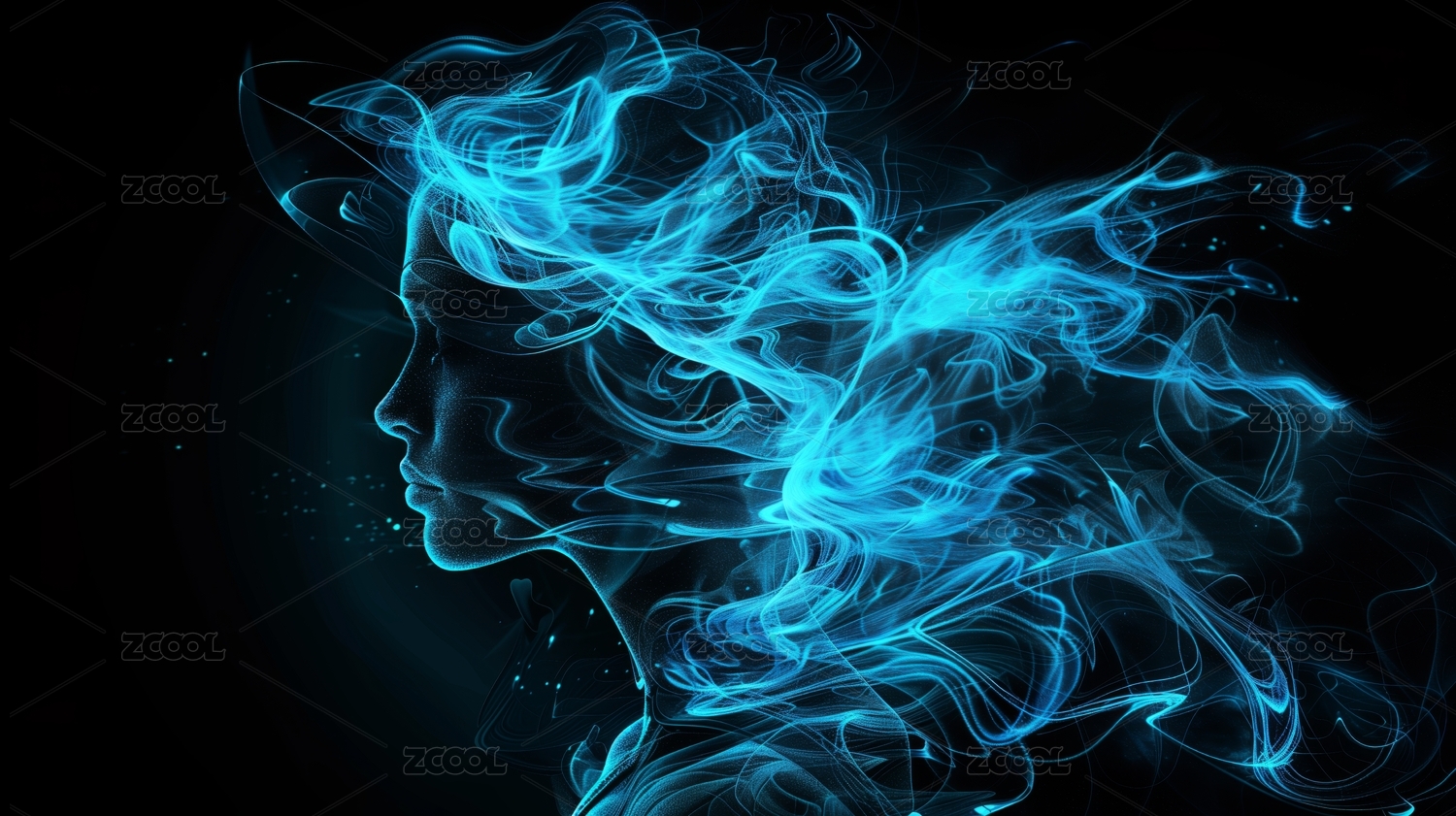 蓝色发光美女抽象头像艺术背景