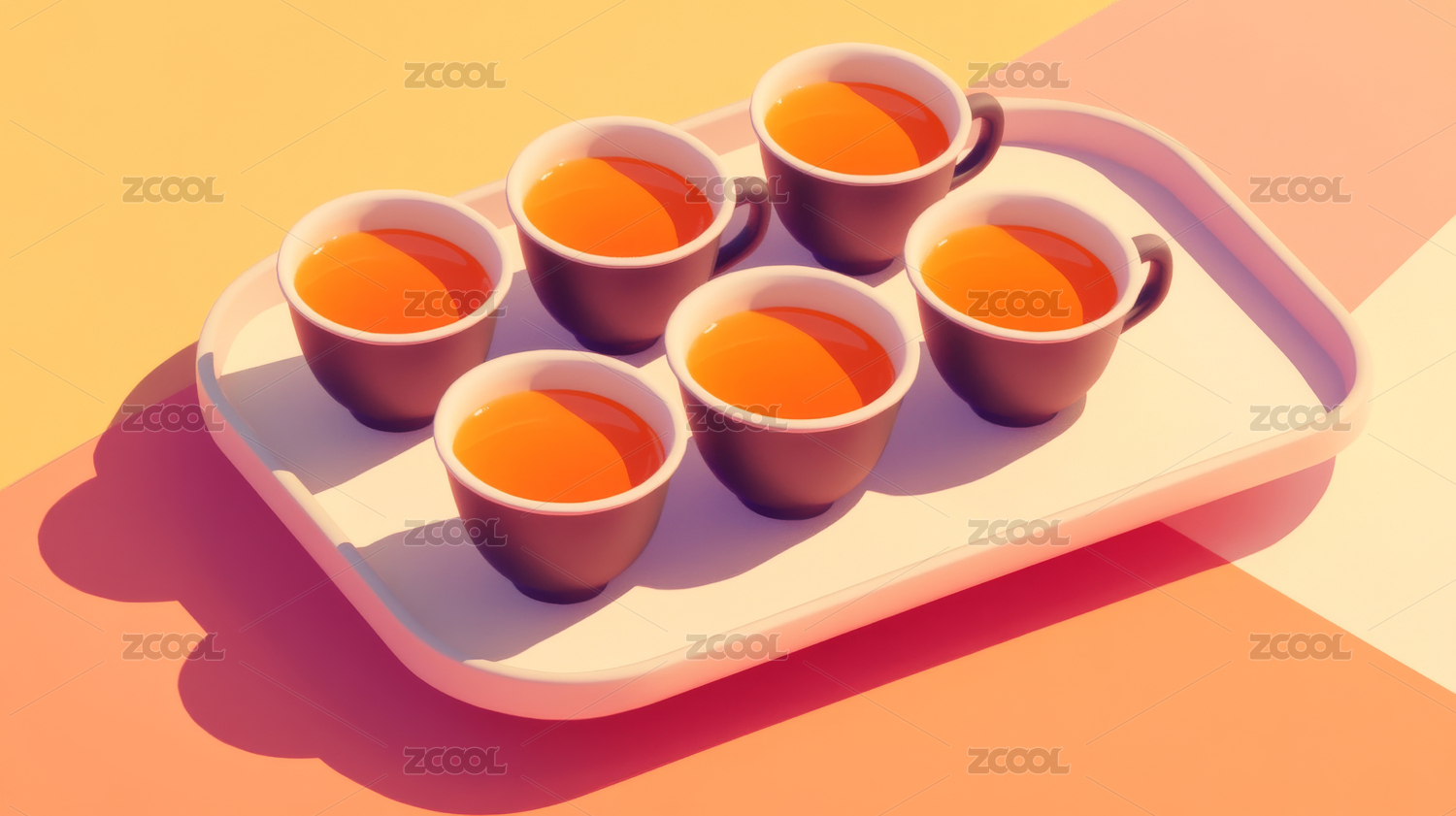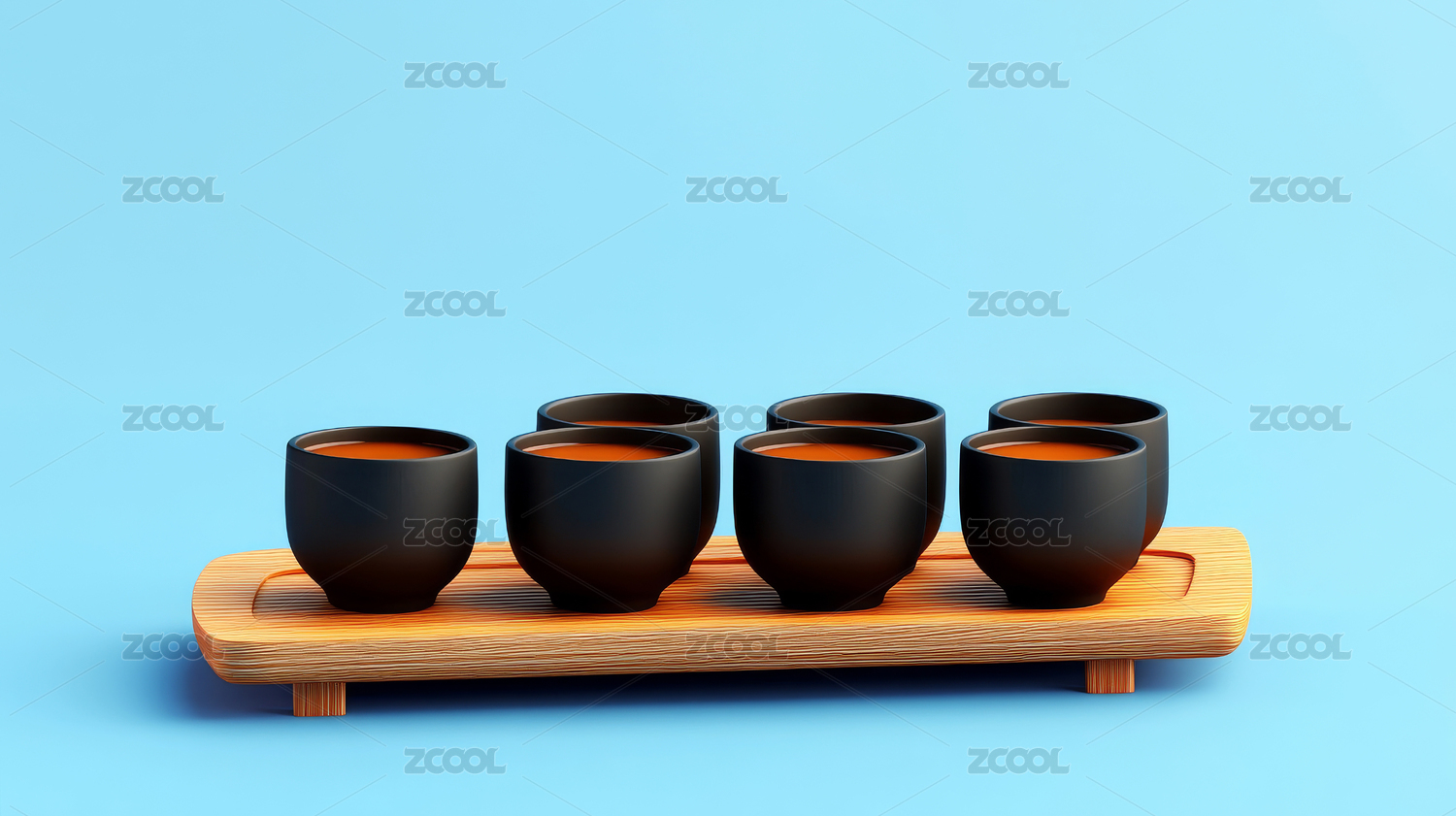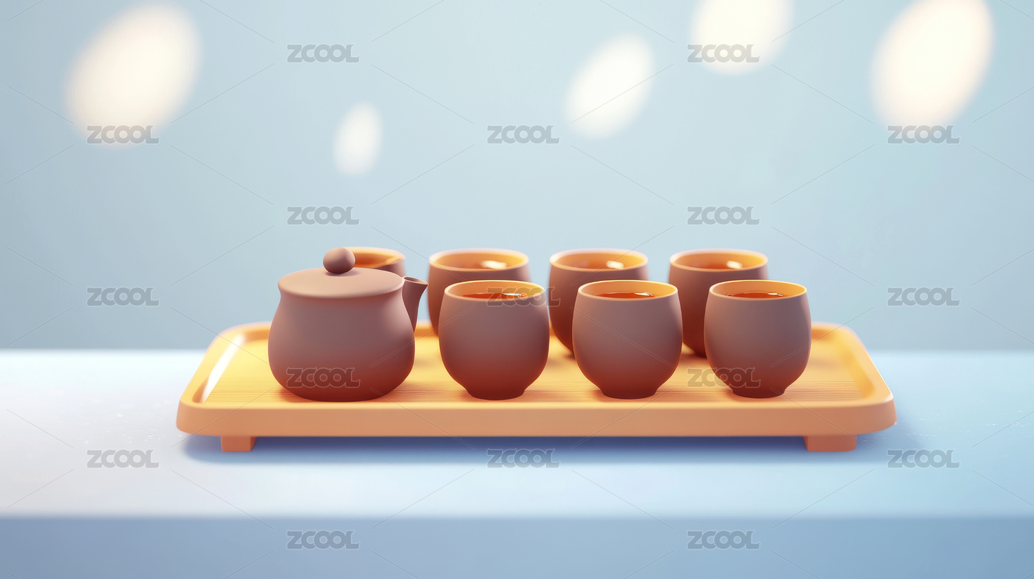 中国风题材的茶壶、公道杯和茶杯组成的茶具套装,3d渲染