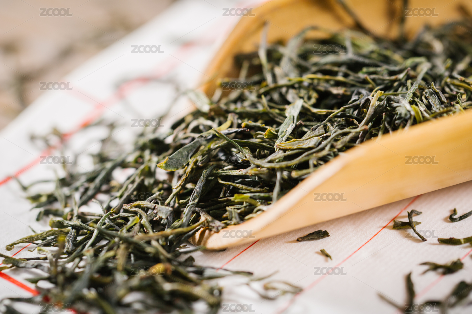 木勺里的茶叶特写