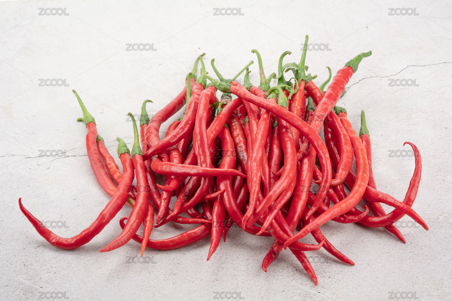 白色背景下摆放着红色的食材辣椒
