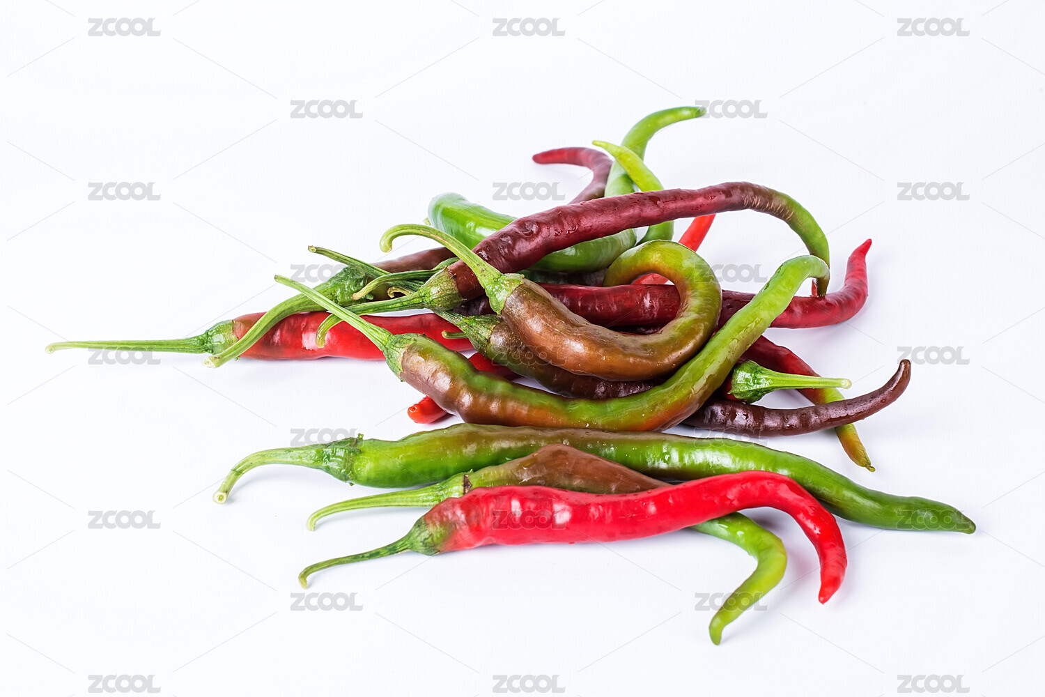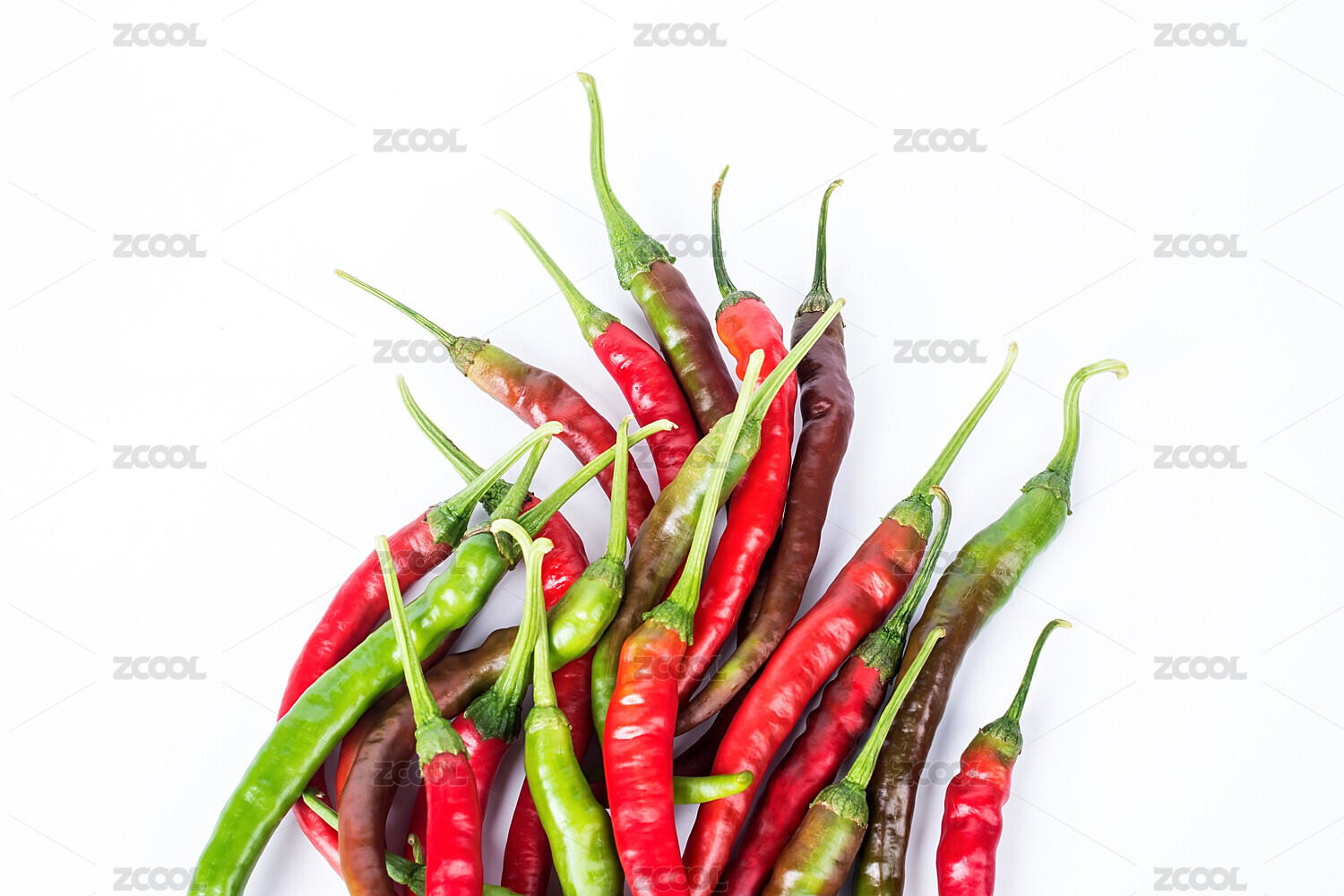 白背景上一堆新鲜辣椒