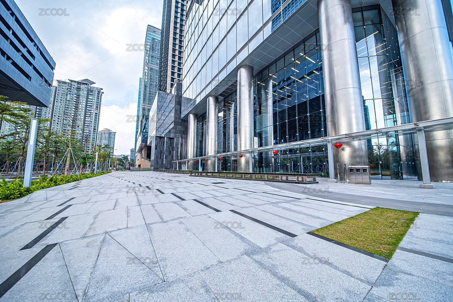 中国广州市南沙CBD写字楼玻璃幕墙和空地面