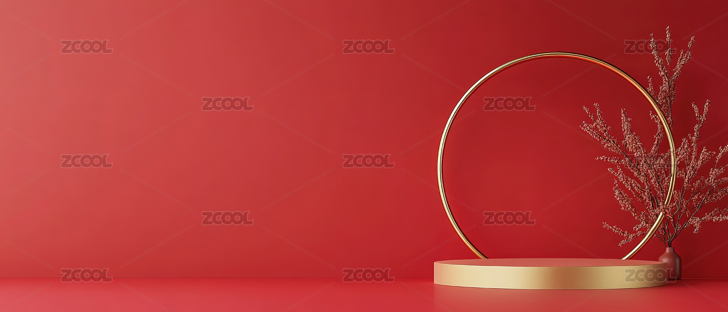 圣诞,圣诞节,圣诞树,红色背景,展台,室内,3D渲染,产品展台,产品展示,商品展台