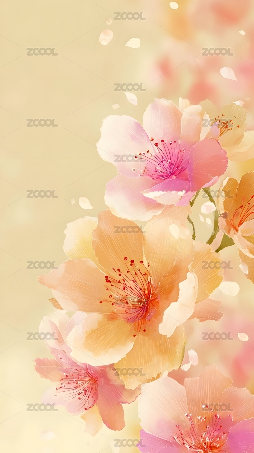 多彩花朵柔色装饰壁纸背景