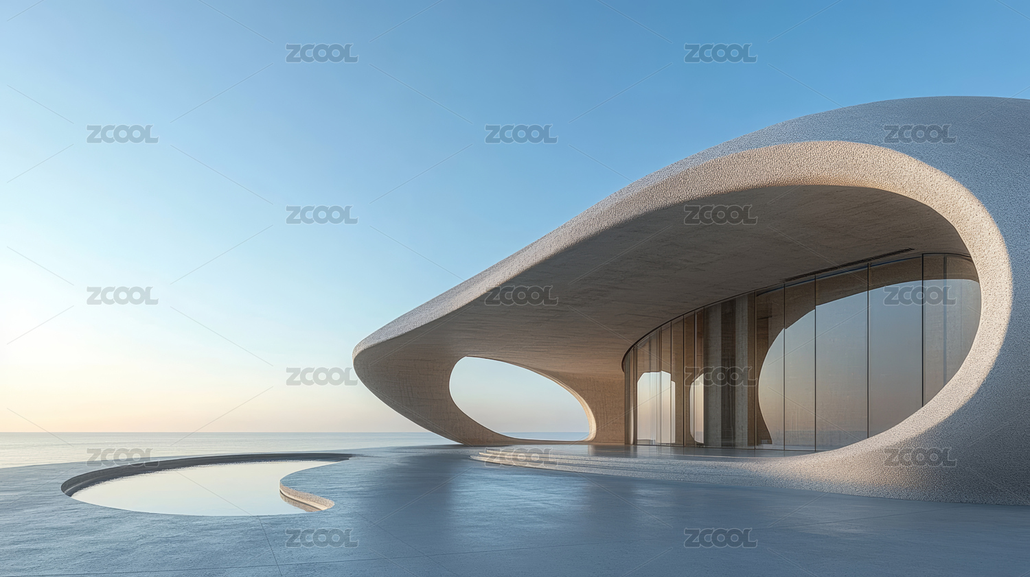 建筑,湖,艺术馆,平台,现代,设计,弯曲,剧院,音乐厅,水面