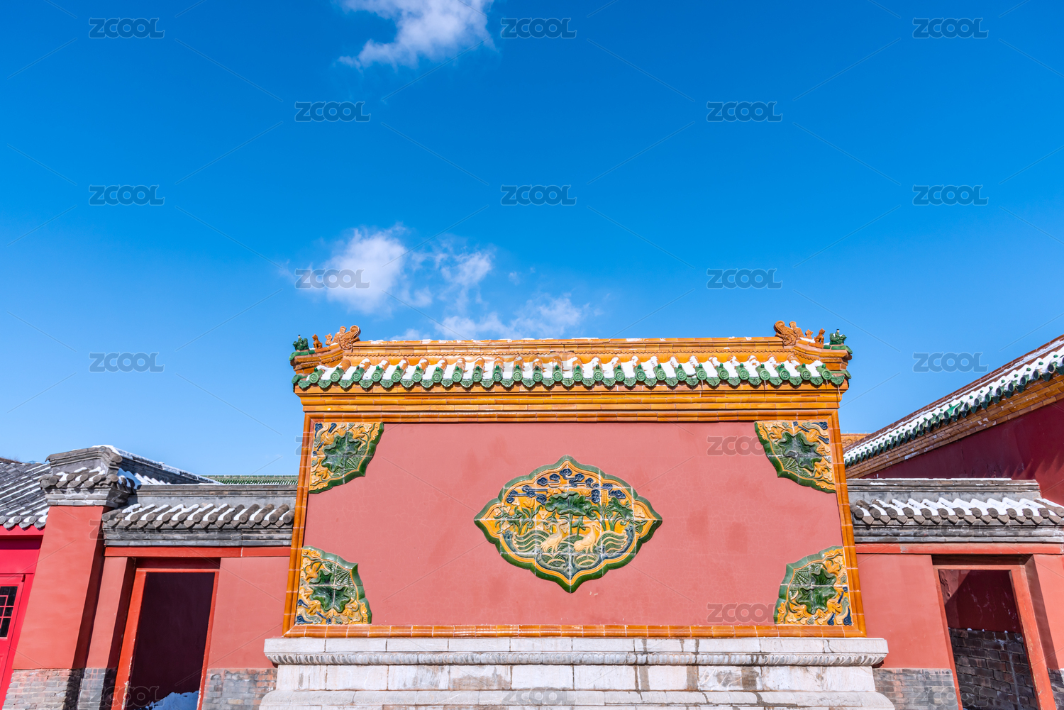 冬天雪后中国沈阳清故宫的影壁墙