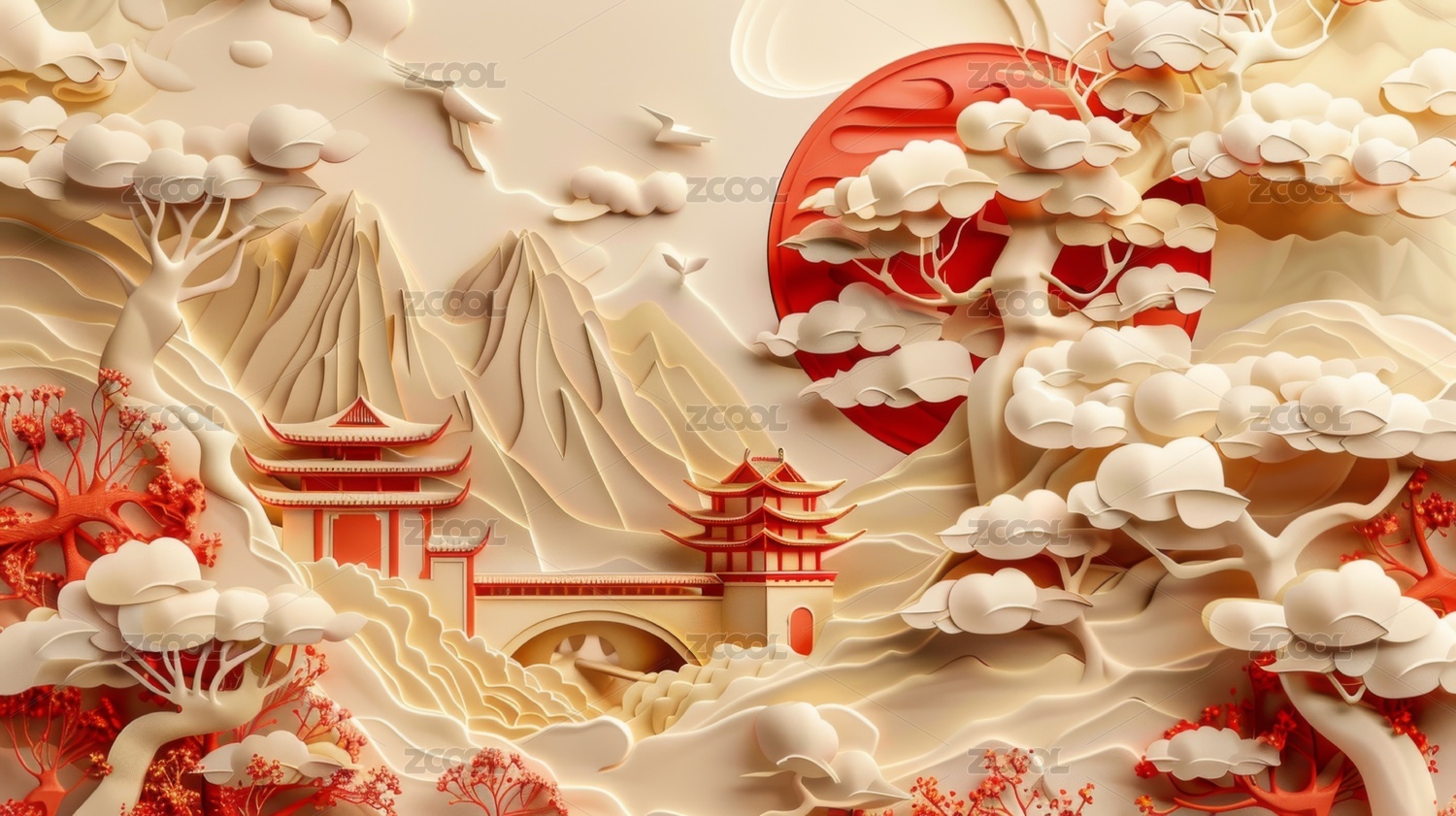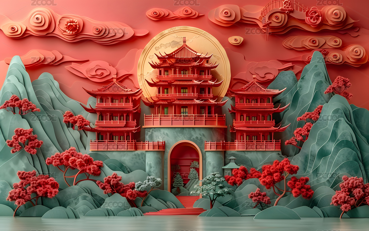 中国风,国风,建筑,天宫,仙境,仙宫,宫殿,东方,国潮,雾气