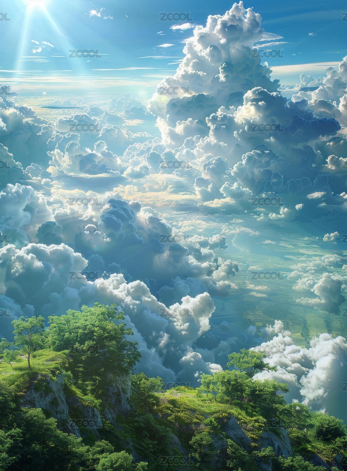 壮丽云海之上葱茏山景