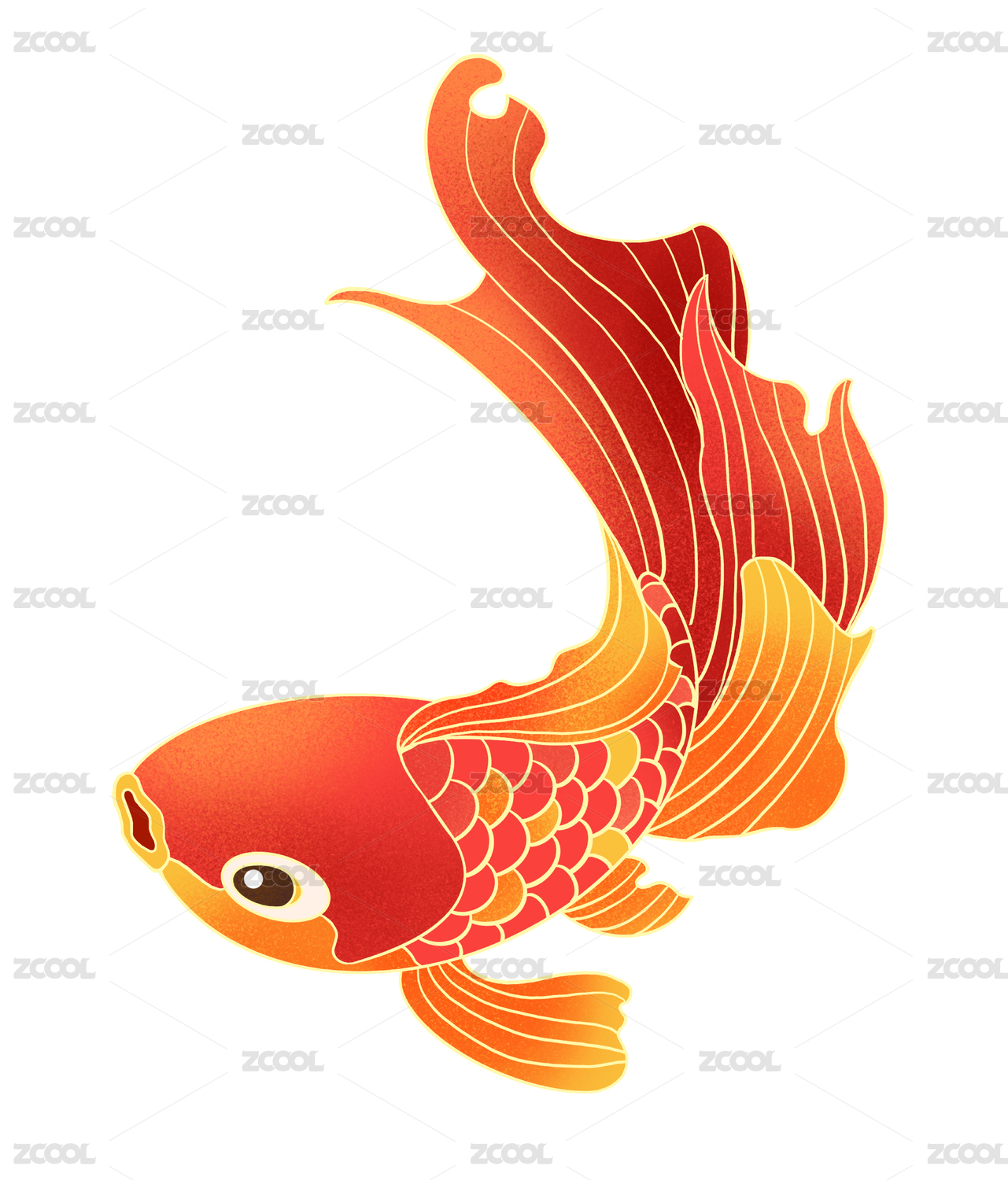 红色金鱼锦鲤插画
