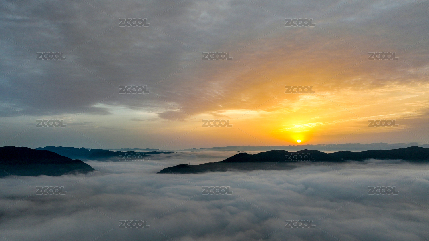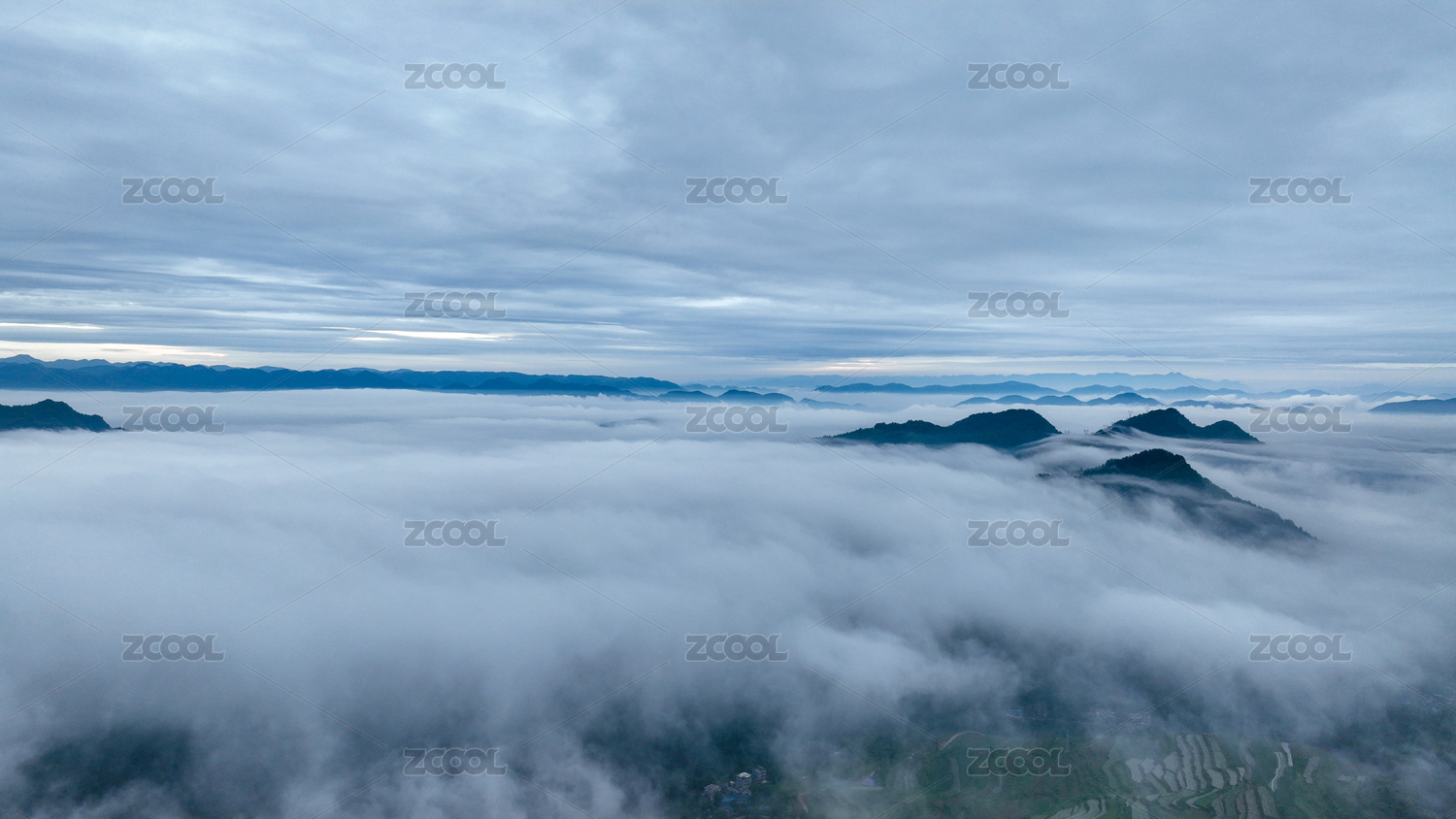 春天春雨雨后户外群山云海云雾自然风景航拍