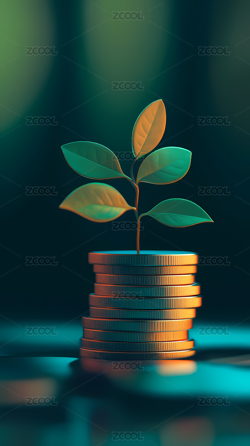 硬币堆上生长的绿植