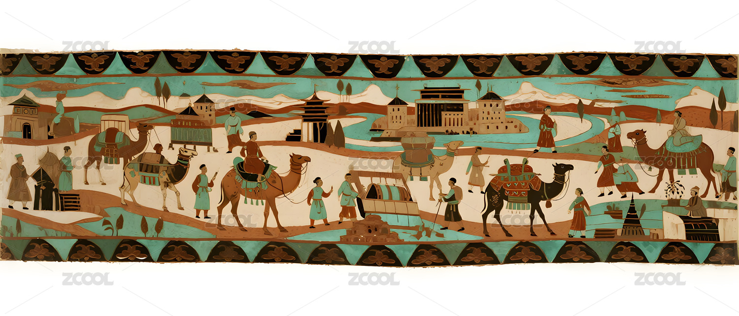 敦煌国潮插图行走在沙漠上的骆驼商队