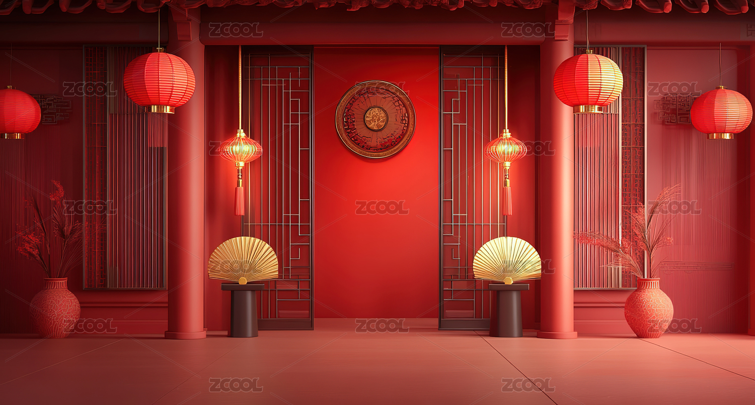红色背景下的中式灯笼
