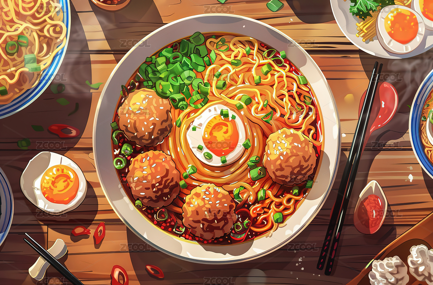 AIGCFG,食物,日式,日漫,美食,插画,手绘,治愈,漫画