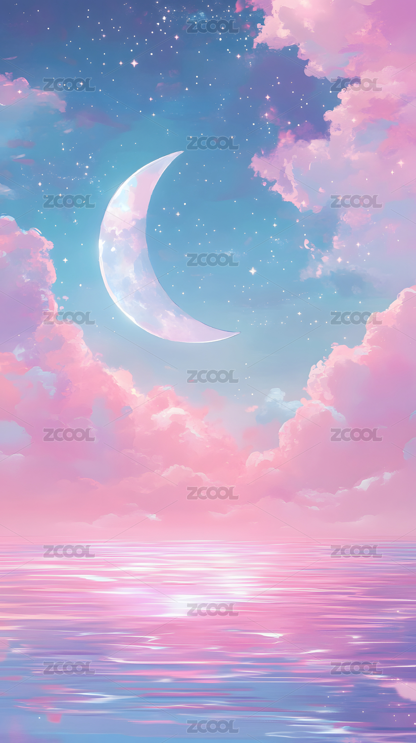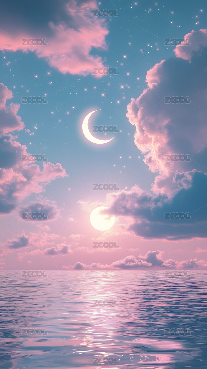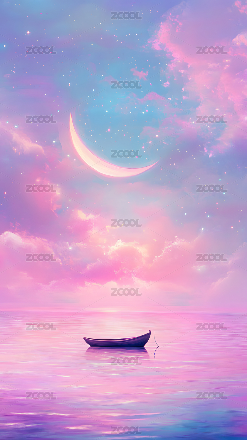 湖面云朵船舶极简风景清新简约唯美节气插画