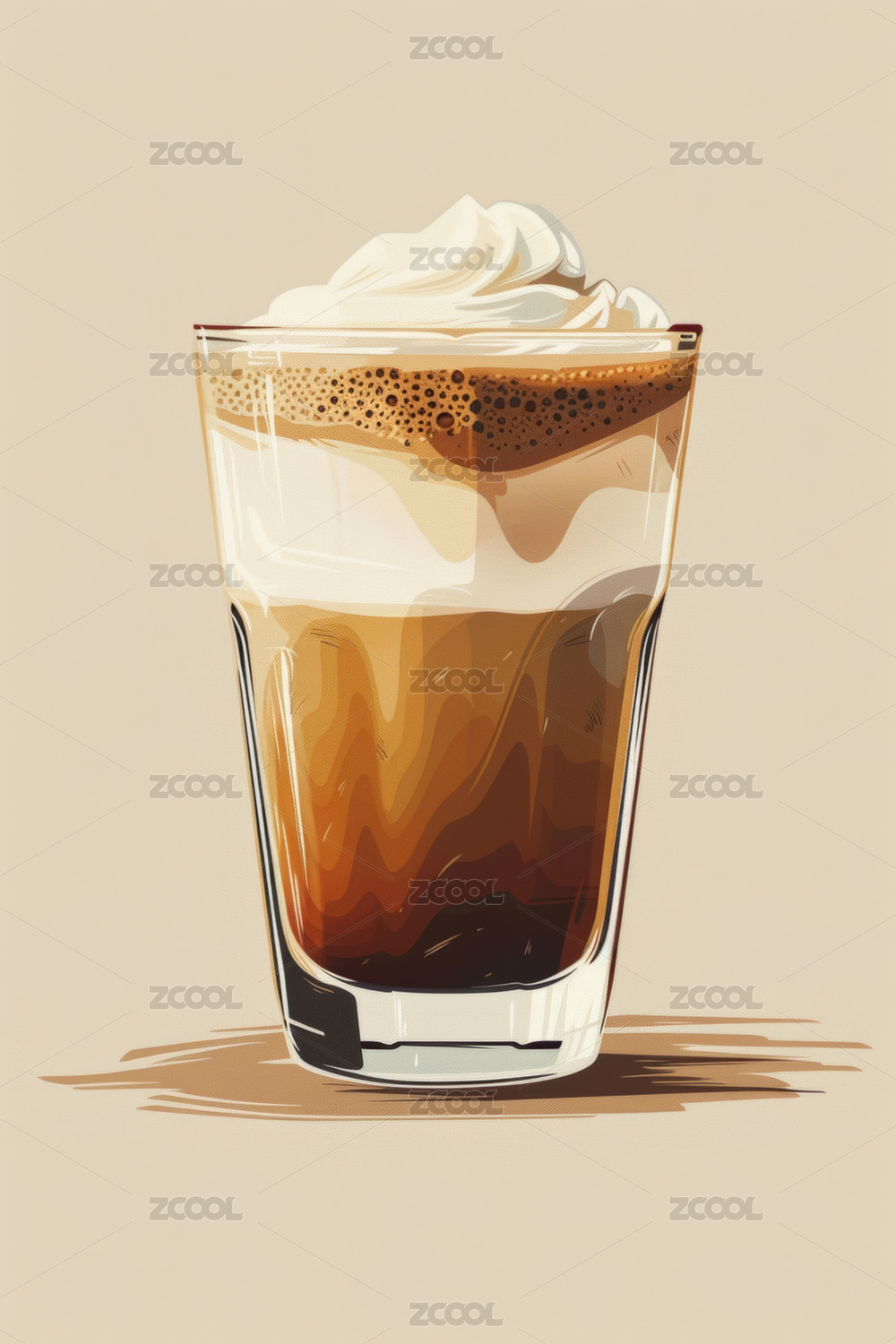 浅褐色背景上的一杯咖啡,插画平面设计
