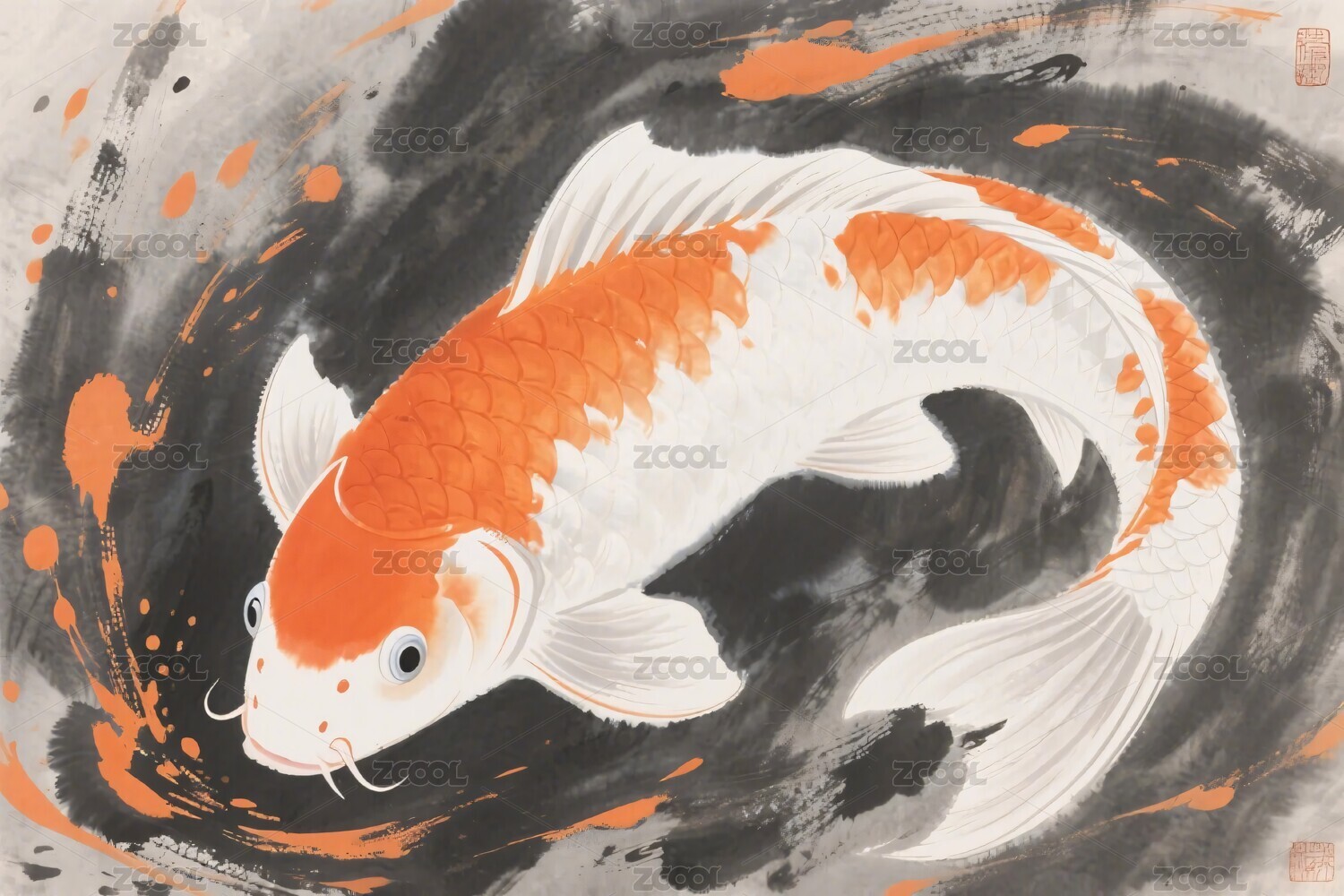 锦鲤水墨画
