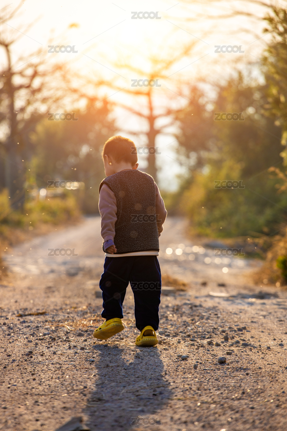 乡间小路上的小男孩
